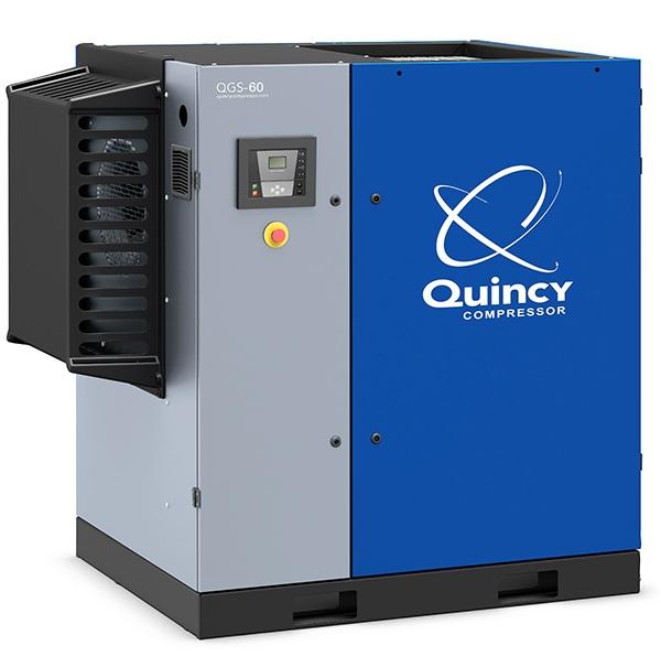 Le QGS de Quincy offre une performance d'air comprimé supérieure tout en ayant un design compact. Avec un cycle de fonctionnement continu de 100%, ce compresseur à vis offre un niveau sonore et des vibrations bien moins élevées qu’un compresseur à piston typique. Une petite empreinte et des niveaux sonores inférieurs offrent une flexibilité accrue pour l'installation, ce qui le rend idéal pour la plupart des applications.